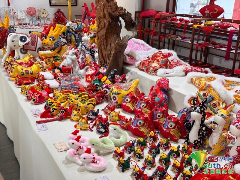 “马庄香包始于公元前202年,最早可追溯到汉代,曾是祛疫辟邪的民俗之物。以独特的中草药配方,复杂精美的制作流程与工艺和极为讲究的面料选择为其特色,历经百年传承,已成为徐州乃至淮海地区最具代表性的非遗制品之一。”在马庄村香包科教文化所内,伴着讲解员的声音,一幅精彩的香包画卷正在小组成员面前缓缓铺开。展柜中陈列的香包形态各异,瑰丽奇特,让团队队员们赞不绝口,有象征吉祥的“真棒”(用来插针的针棒),寓意平安的莲花葫芦,还有融入现代元素的创新设计。针法细腻,色彩明艳,每一个香包都展现着匠人巧夺天工的技艺。?