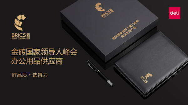 早在G20杭州峰会,得力已然成为G20峰会官方指定办公用品品牌。正因为这一次顺利的合作,让得力成为后来“一带一路”以及金砖国家峰会主办方的首选。